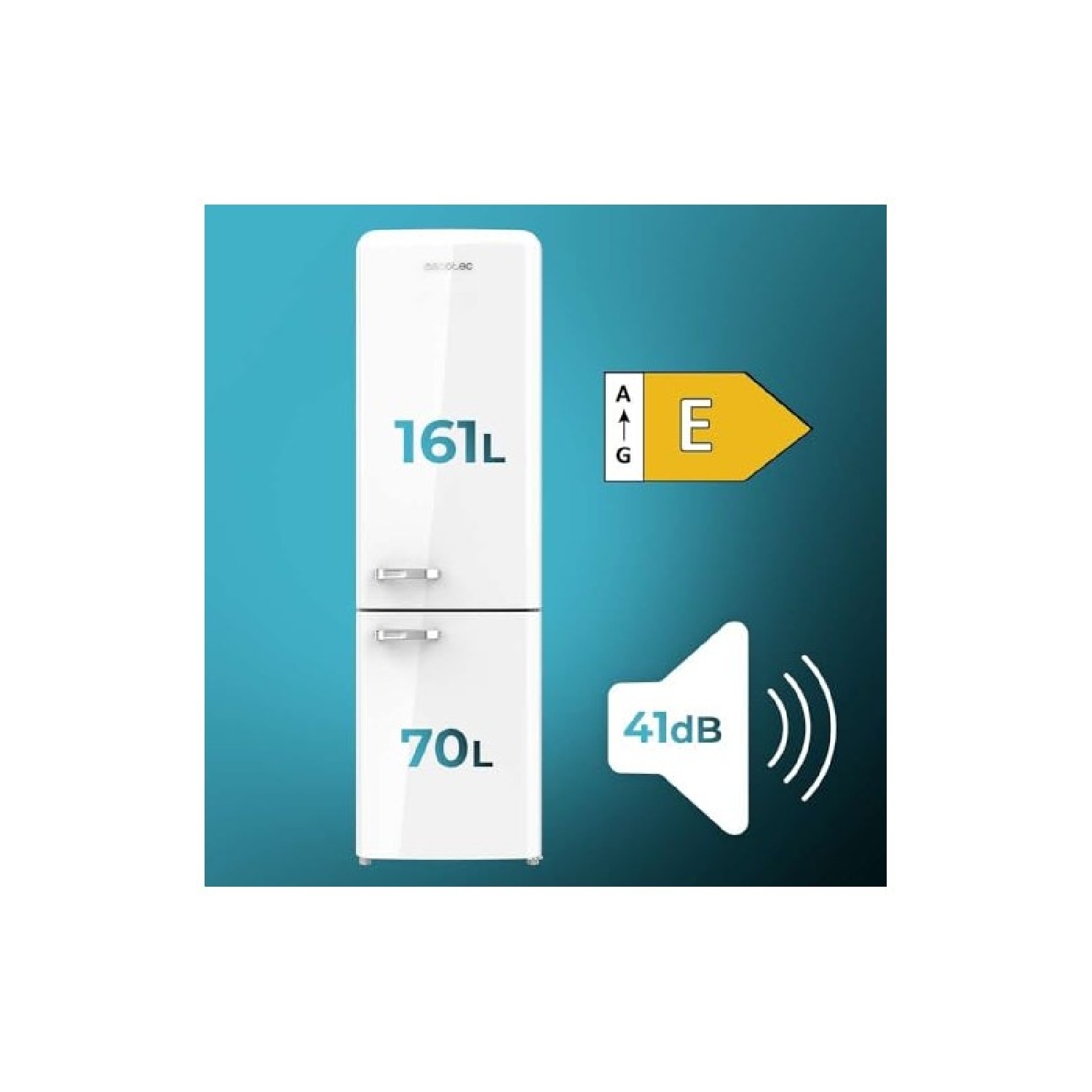 Frigorífico combi retro rojo, 186,5cm alto y 54cm ancho, capacidad 250L, Total No Frost y clase E y con sistema Multi Air Flow. Además, cuenta con el modo Fast Cooling.