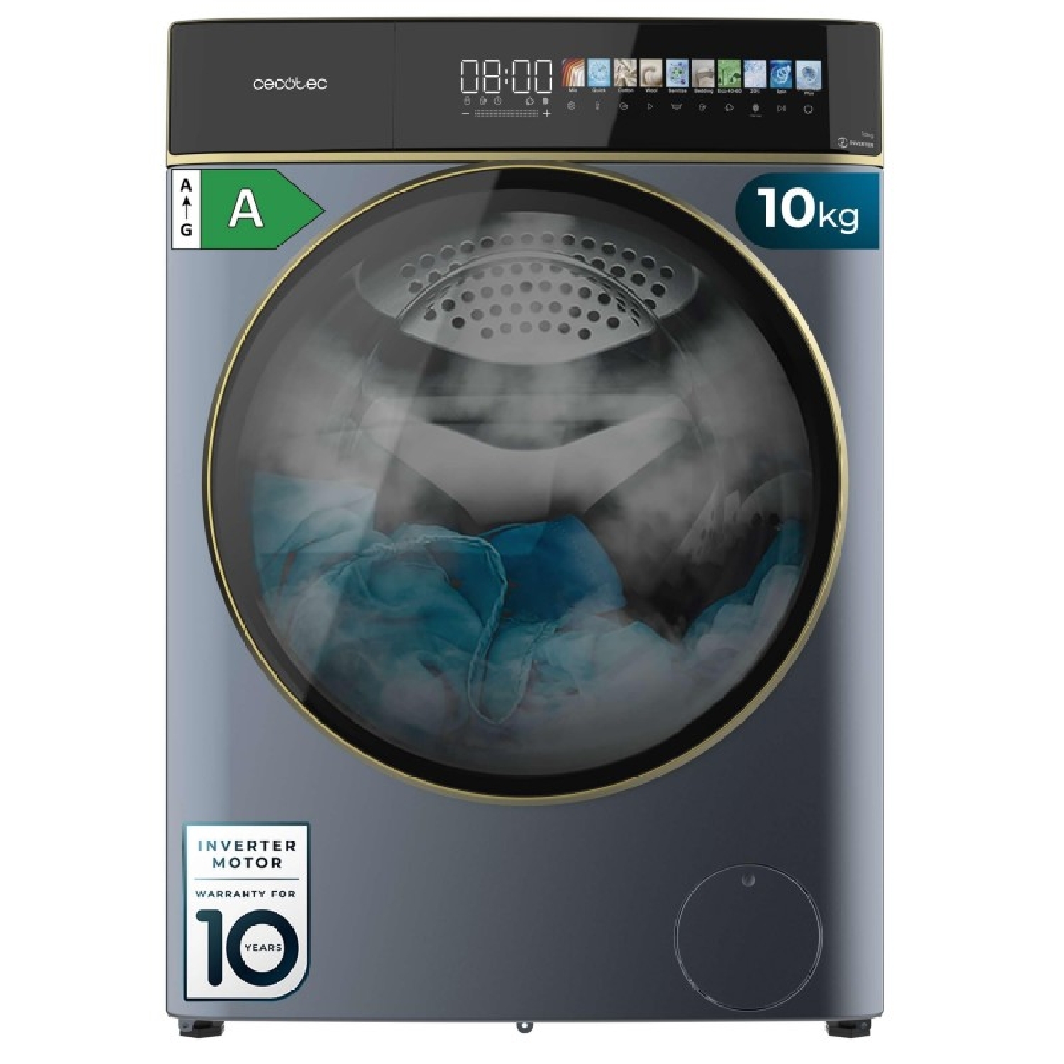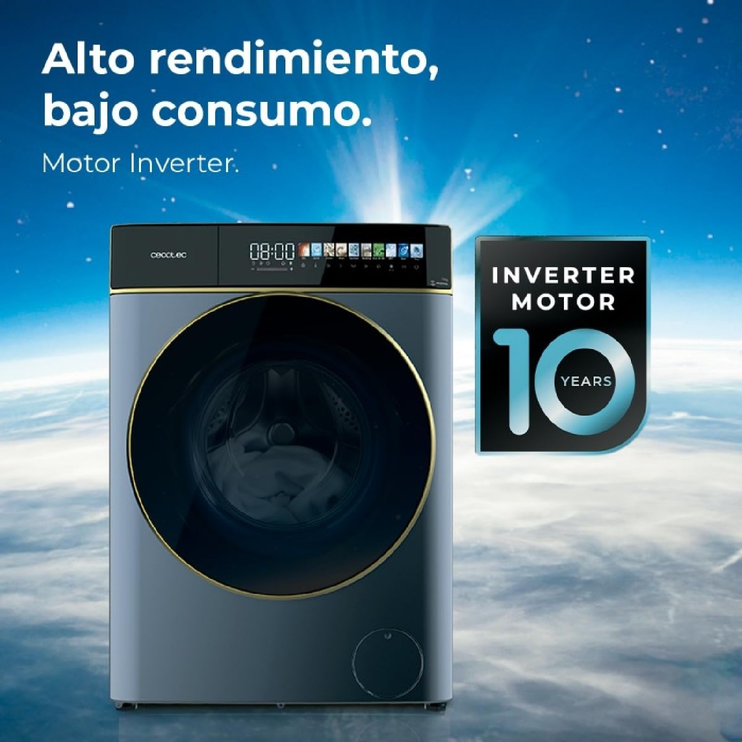 Lavadora de carga frontal ice blue de 10 kg de capacidad y 1400 rpm, Pantalla FullColor 10,3″, 11 programas, Motor Inverter Plus, SteamMax, Clase A-10%, Sanitize, OnSmart, Fuzzy Logic, Smooth Wash, Goma Antibacteriana y barra indicadora de proceso