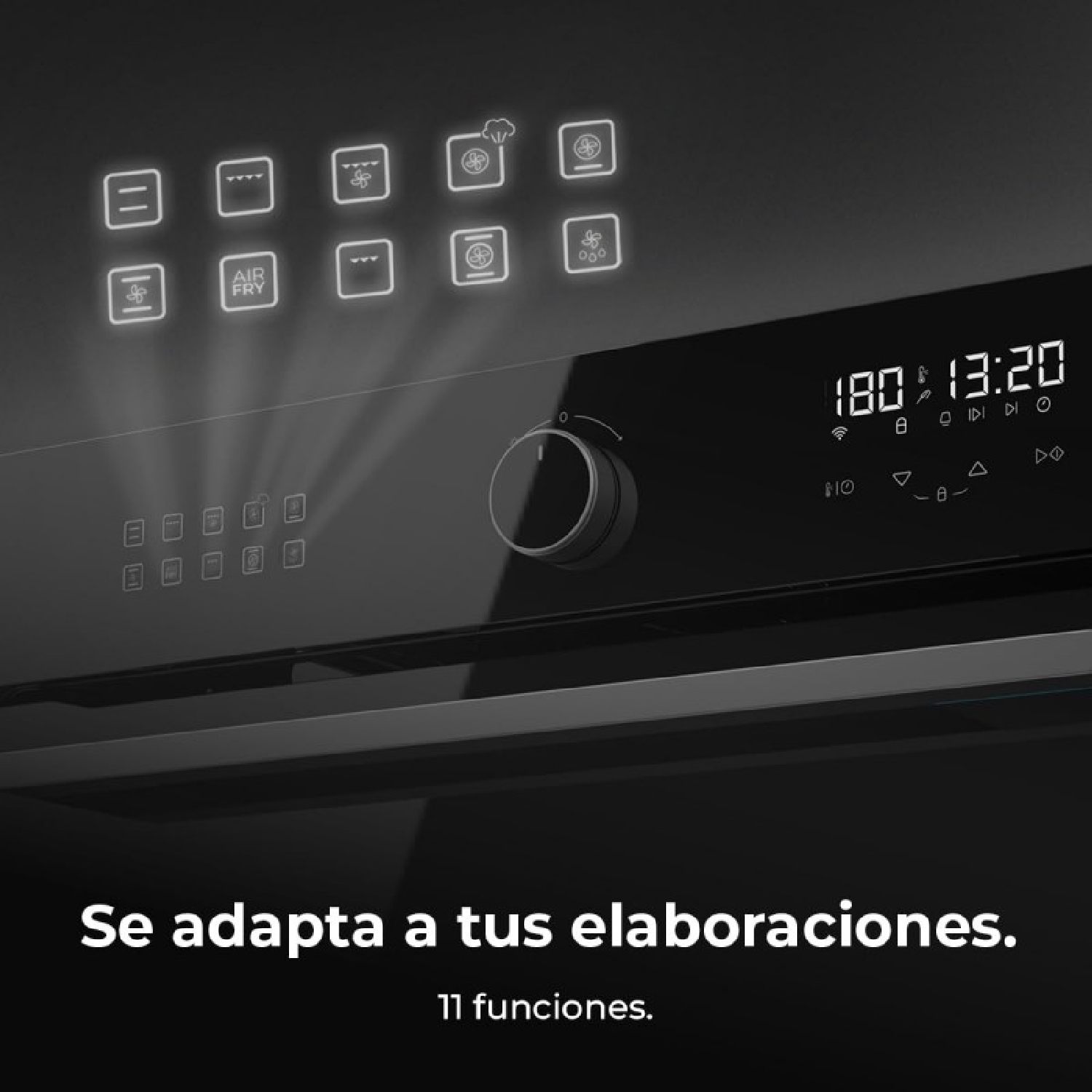Horno integrable Airfryer Glass Black de 53L de capacidad, 11 funciones con Airfryer Master, Pizza Master, Steam Asisst, Steam EasyClean, 3D cooking, Clase A.