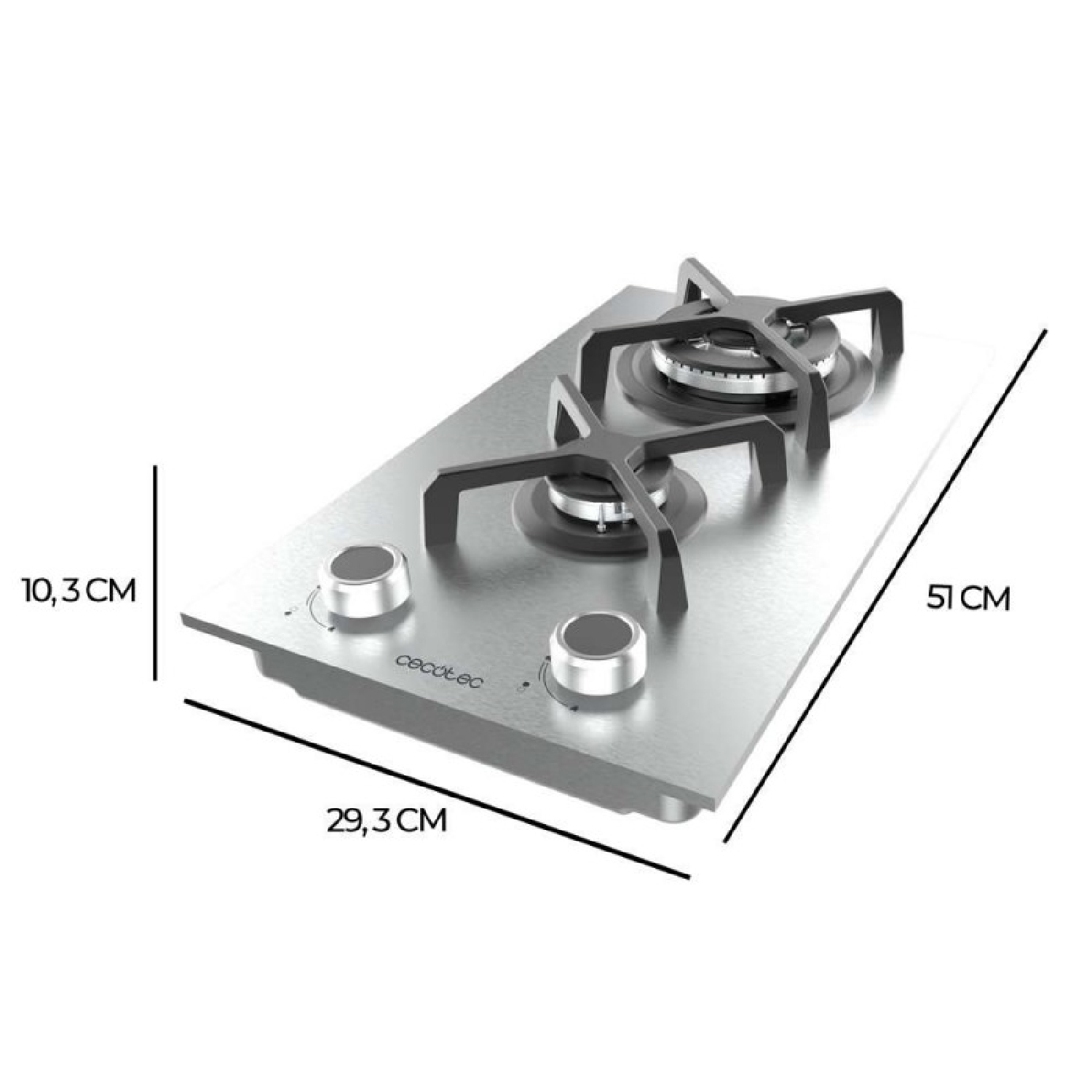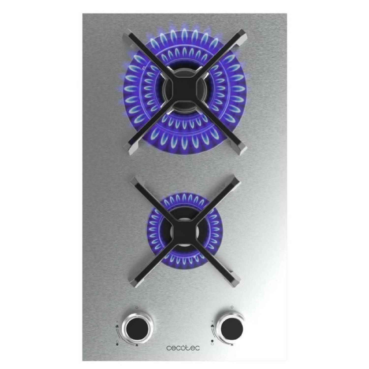 Cecotec Bolero Squad G 2400S Inox – Placa de Gas de 2 Fuegos, 5,2kW, Acero Inoxidable, Parrillas de Hierro Fundido, Quemador WOK Triple Corona, Encendido Electrónico, Seguridad en Válvulas, accesorio para la conversión de gas incluído.