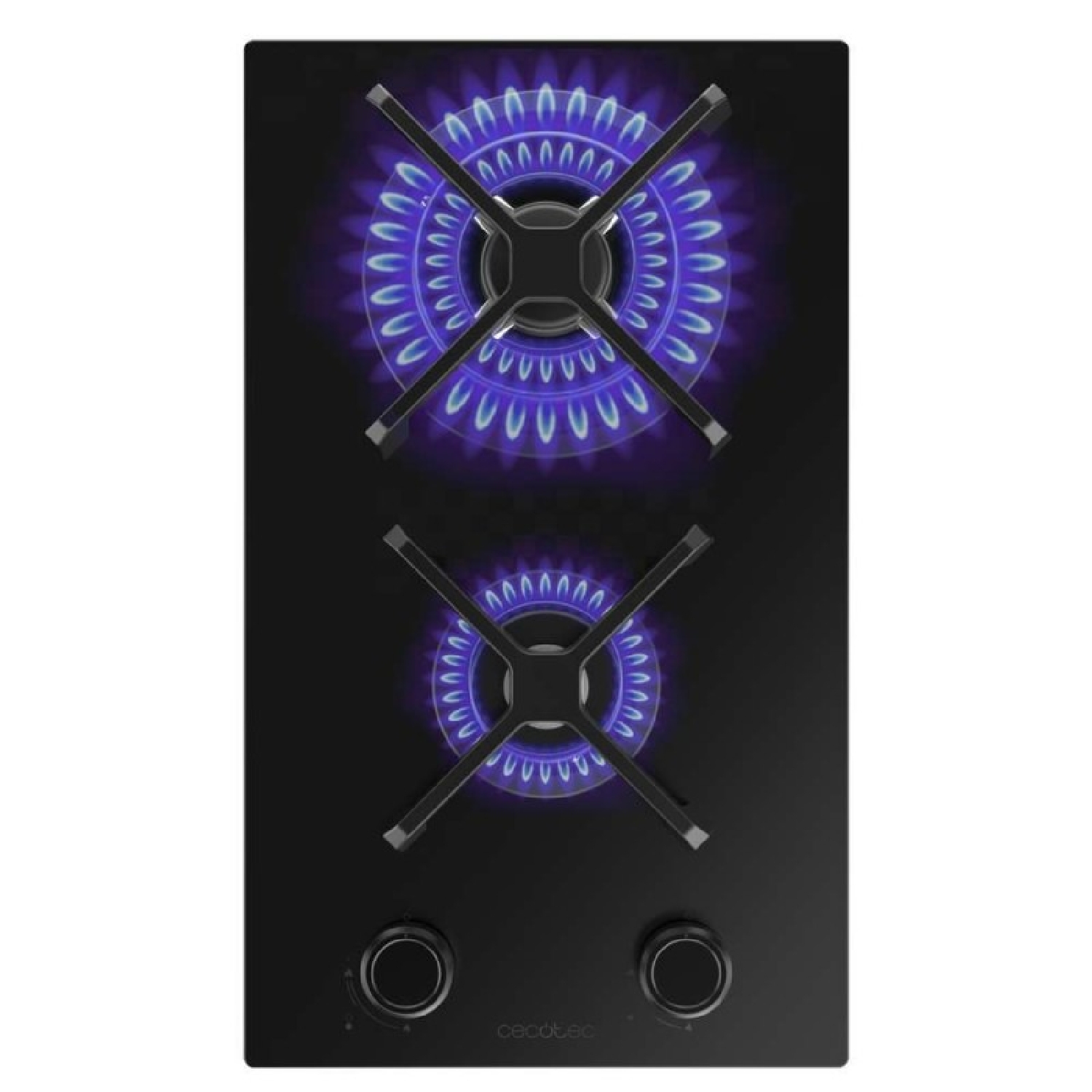 Cecotec Bolero Squad G 2400S Nano Glass – Placa de Gas de 2 Fuegos, 5,2kW, Nano Glass, Parrillas de Hierro Fundido, Quemador WOK Triple Corona, Encendido Electrónico, Seguridad en Válvulas, accesorio para la conversión de gas incluído.