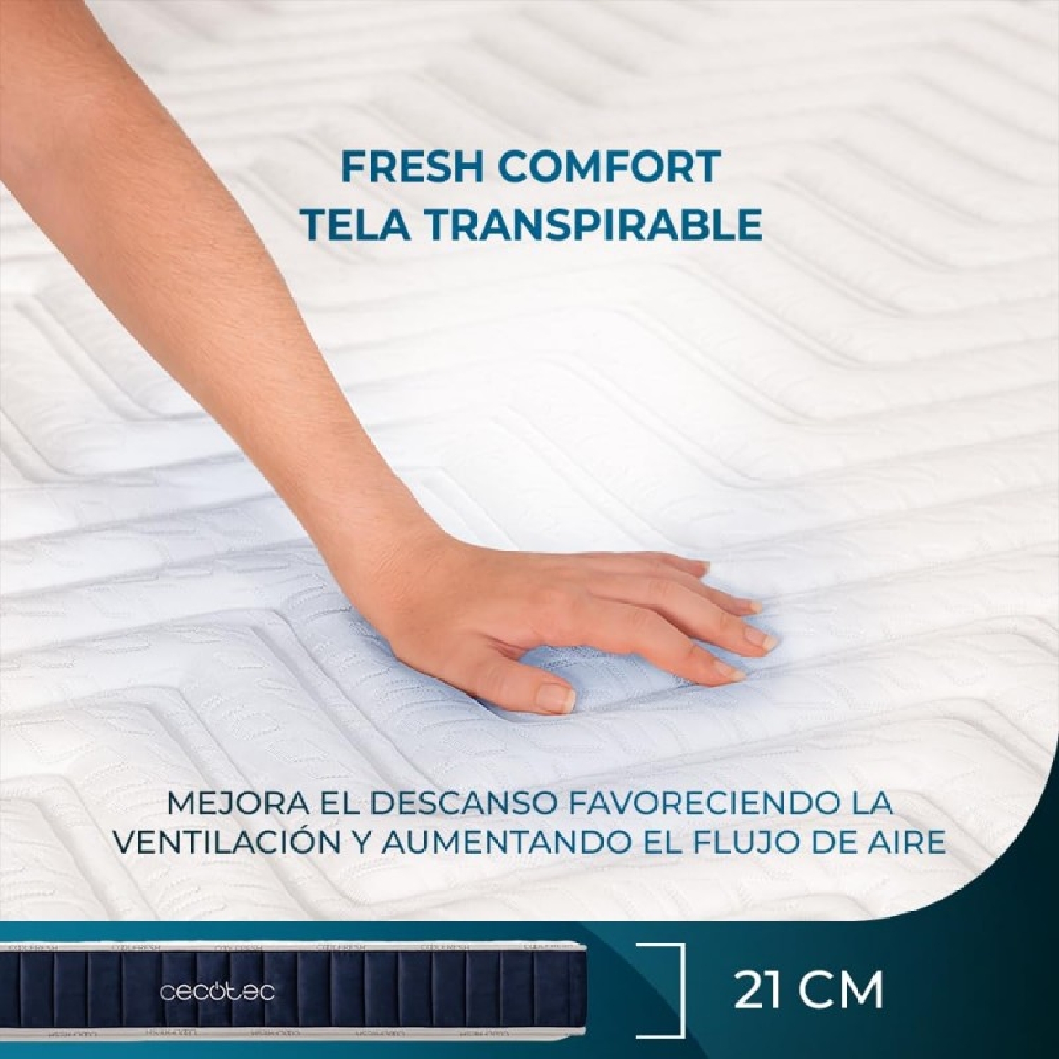 Flow CecoFresh 2100 CoolConfort 90 x 190 Colchón con núcleo de espuma y tecnología innovadora CoolConfort para una sensación ultra refrescante durante el descanso. Altura 21 cm.