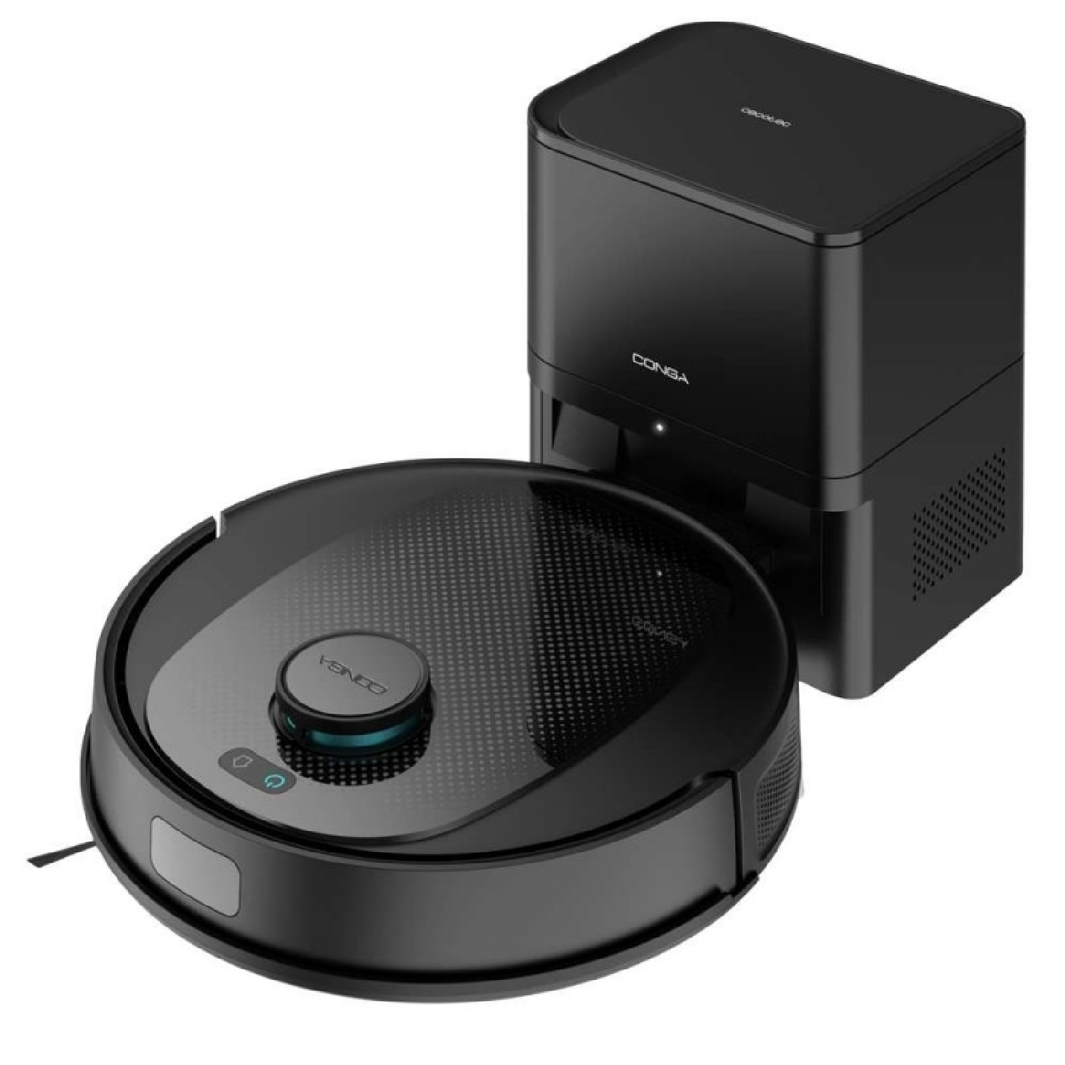 Robot aspirador Conga 7690 Immortal Max Home con tecnología de navegación láser. Base de autovaciado con 2,5 L de capacidad. Limpieza 4 en 1: barre, aspira, friega y pasa la mopa. Potencia de succión de 5000 Pa. Hasta 220 minutos de autonomía. Cepillo central de silicona, óptimo para pelo de mascotas. Mopa de fregado y 1 cepillo lateral. Control APP y asistentes virtuales. Conexión Bluetooth y WiFi para redes 2,4 GHz y 5 GHz.