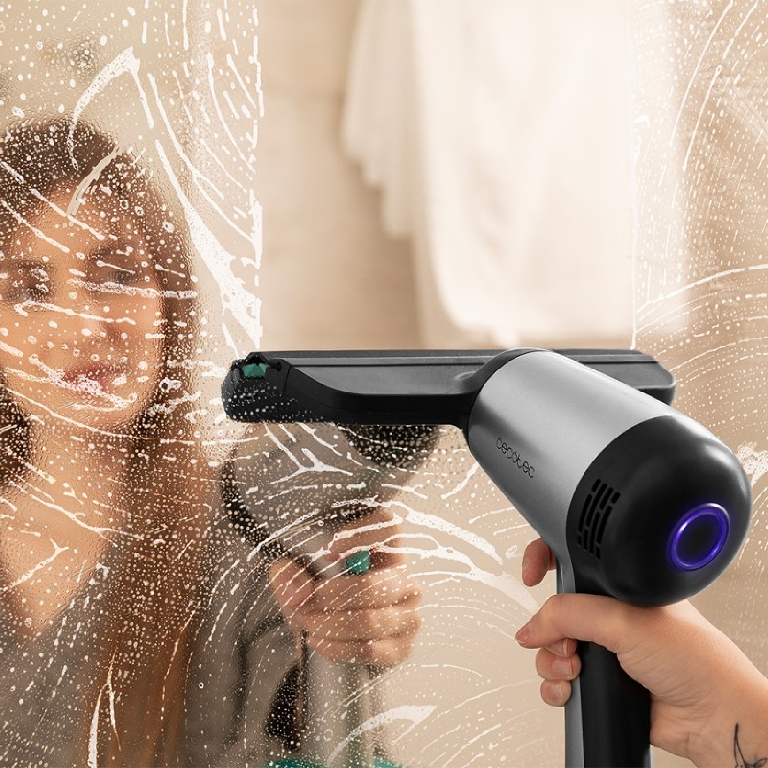 Aspirador limpiacristales Conga Rockstar Glass con función 3 en 1. Pulveriza, limpia y aspira. Autonomía de 30 minutos gracias a su batería de 3.7 V. Limpia hasta 75 m2 de superficie por carga. Boquilla versátil de 220 mm. Incluye botella pulverizadora con mopa.