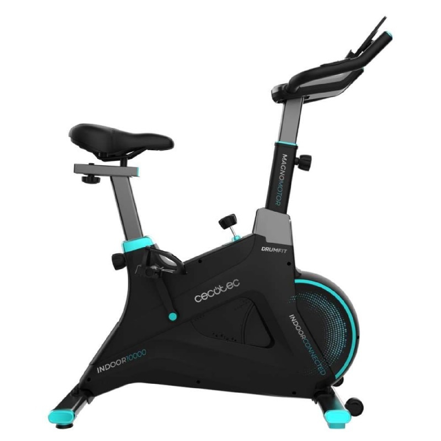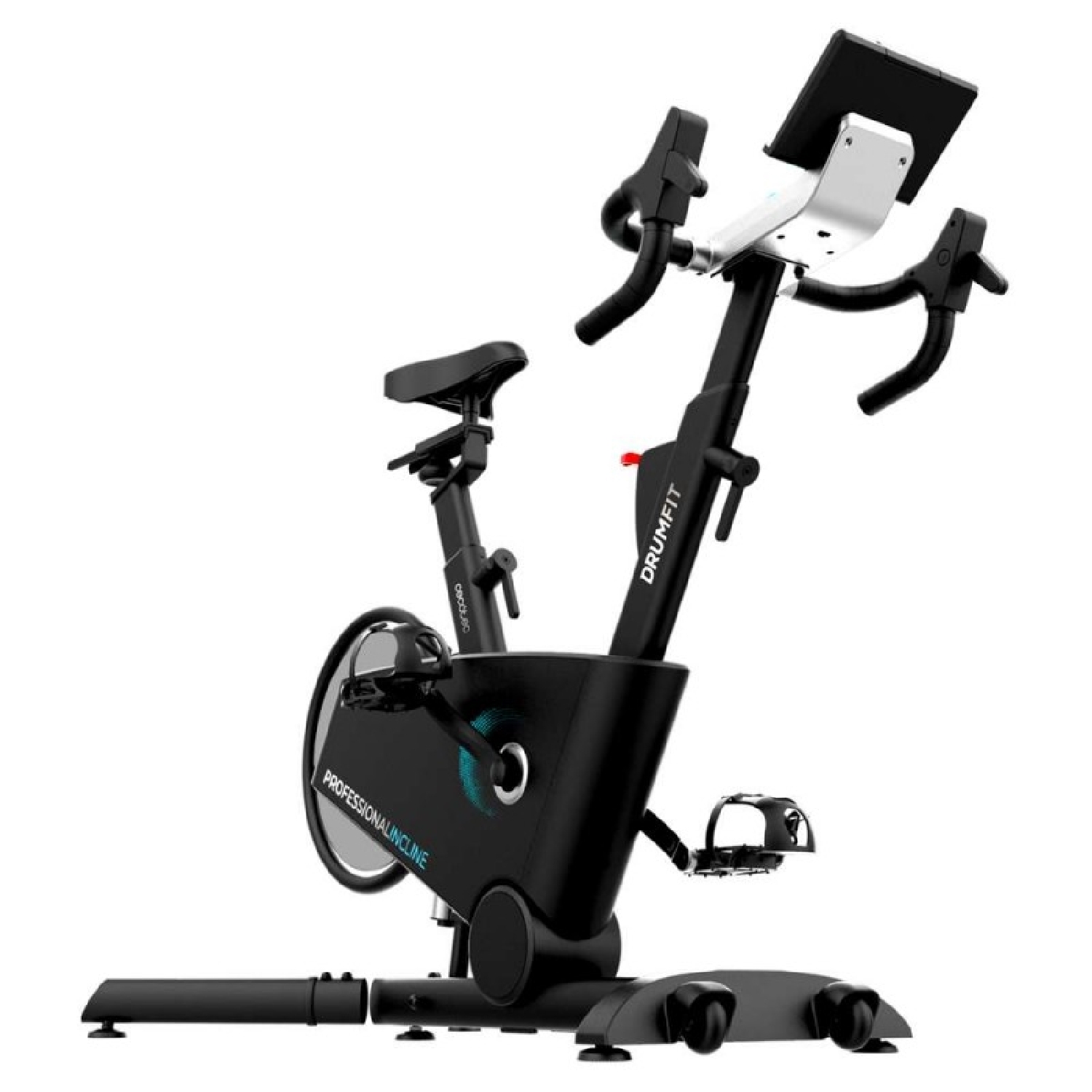 Bicicleta indoor profesional con resistencia magnética e inclinación motorizada. APP. Volante de inercia 10 Kg aluminio. 16 niveles de inclinación. 32 niveles de resistencia. Ruedas de transporte. Soporte para dispositivos. Peso máximo de 110 kg y altura máxima 190 cm.