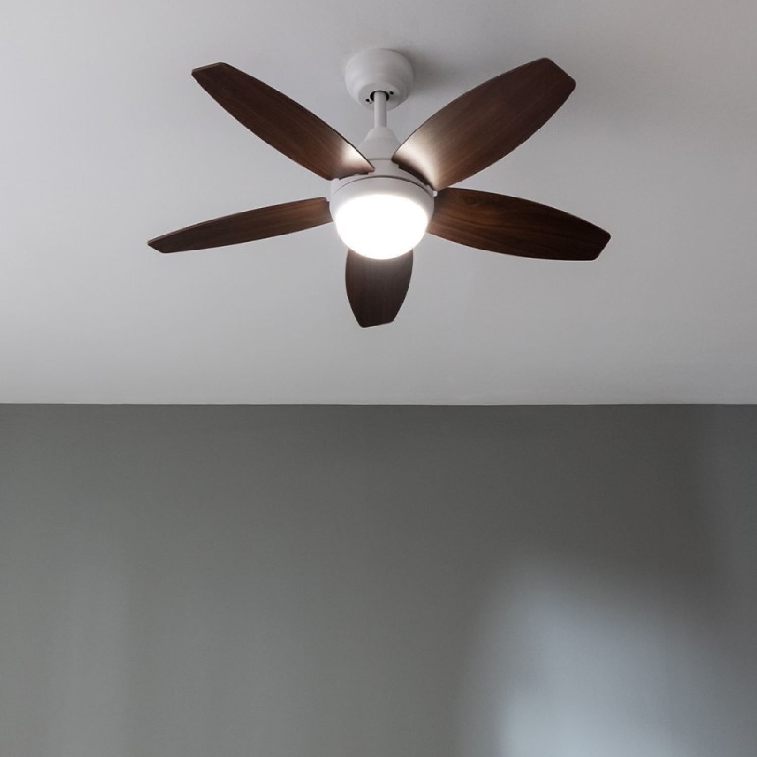 Ventilador de techo de 53W y 42” con luz LED de 15W, 3 tonalidades seleccionables, mando a distancia , temporizador seleccionable, 3 velocidades y 5 aspas.