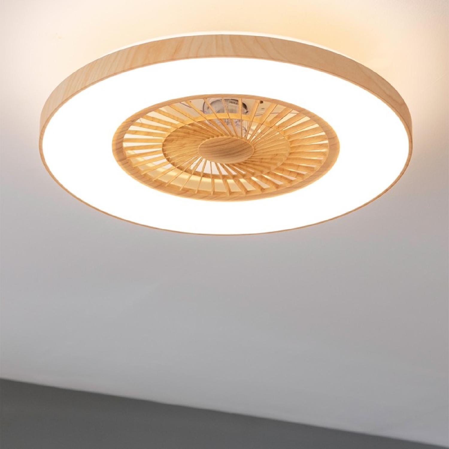 Ventilador de techo de diseño con motor DC , con una potencia de 20W y luz LED de 45W , con 5 aspas de 24 pulgadas , control remoto, 3 velocidades, 3 tonalidades de luz disponibles, temporizador y modo winter/summer.