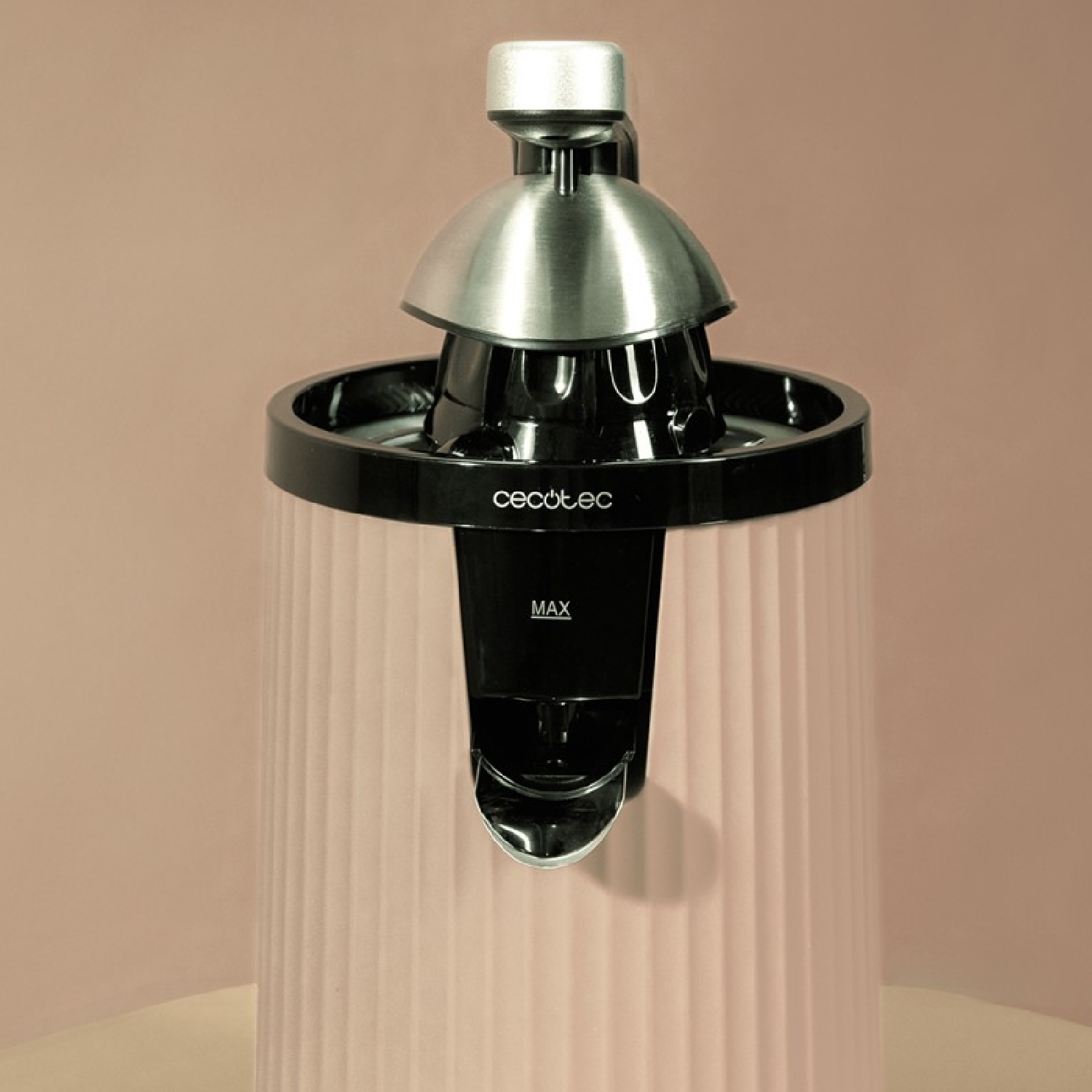 Exprimidor eléctrico de brazo retro para naranjas y cítricos con 600 W de potencia, filtro de acero inoxidable, un cono de plástico, palanca para extraer la pulpa y sistema antigoteo.