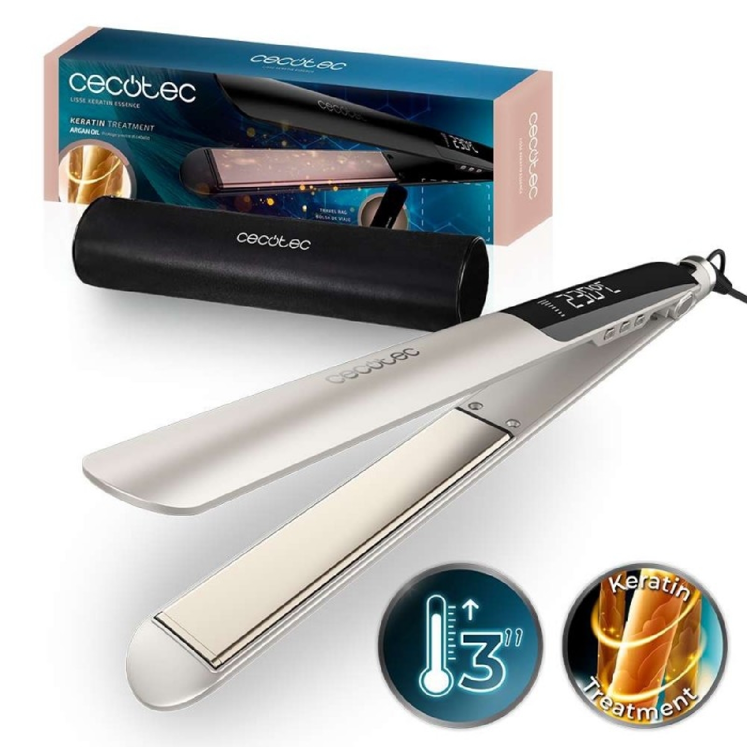 RitualCare Keratin Essence Champagne: Plancha de Pelo Estrecha con Cable, Función HeatMax, 130-230ºC, Revestimiento Cerámico con Queratina y Aceite de Argán, Bloqueo de Placas, Apagado Automático, Incluye Bolsa de Viaje