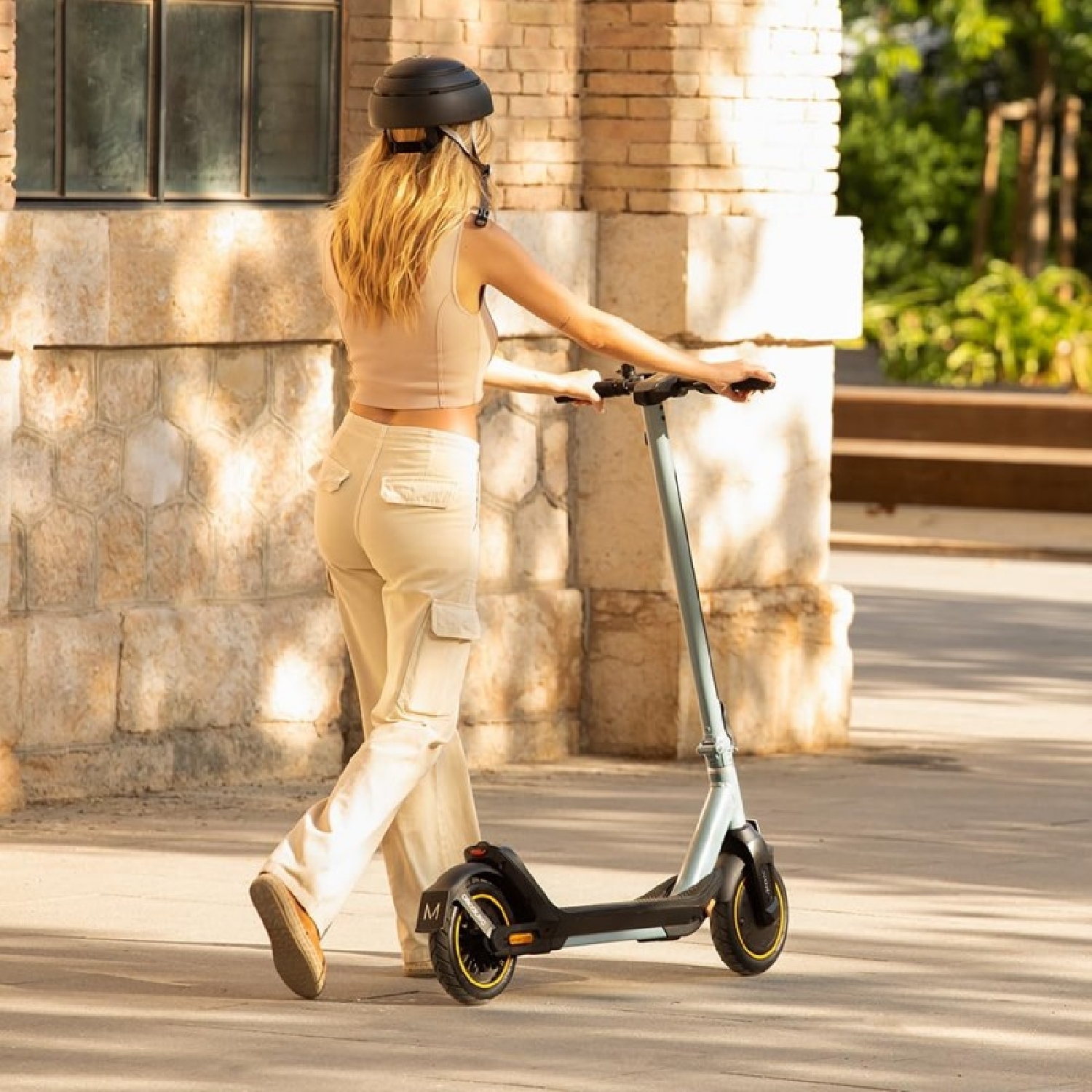 Patinete eléctrico con potencia máxima de 500 W que permite superar pendientes y desplazarse por cualquier superficie. Con autonomía de hasta 20 km. Cumple con todos los requisitos de la nueva normativa española de circulación