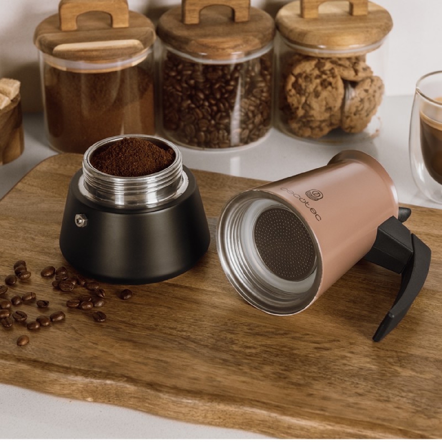 Cafetera italiana fabricada en acero inoxidable de alta calidad ideal para 4 tazas de café.