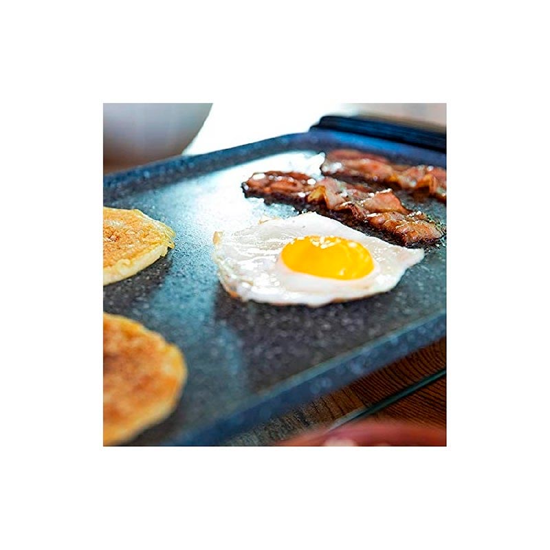Plancha de asar eléctrica de gran potencia con 2600 W, revestimiento de piedra RockStone, resistencia en E, termostato regulable y apta para lavavajillas.