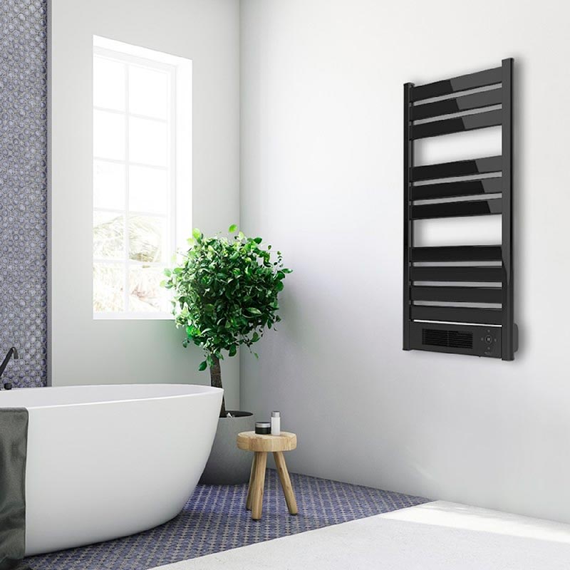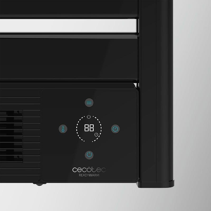 Toallero eléctrico con calefactor cerámico incorporado. Potencia total de 2000 W. Pantalla LED. Mando a distancia. Temporizador 24h. IPX4. Ajuste temperatura. Termostato.